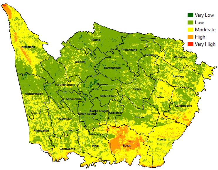 Figure 8 Map of potential drought in Klaten Regency