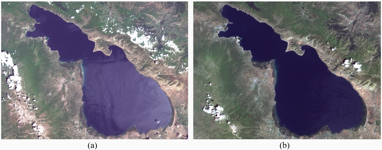 Figure 2: Landsat TM and OLI images in natural color composite: (a) 2011-07-28, (b) 2015-06-21