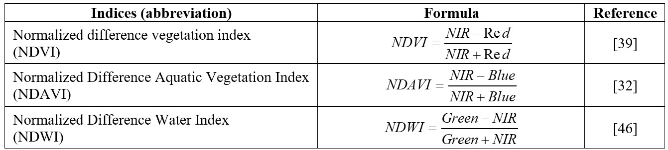 Table 2: Vegetation indices for identifying aquatic vegetation