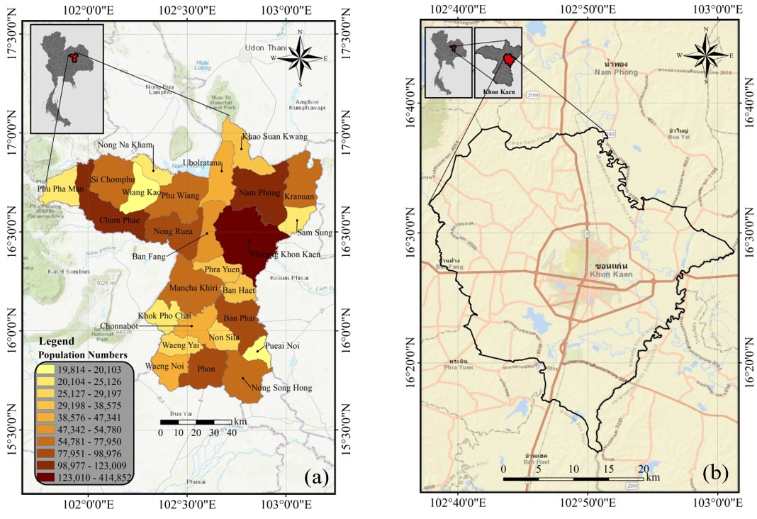 Figure 1: (a) Khon Kaen populations (b) Muang Khon Kaen municipality