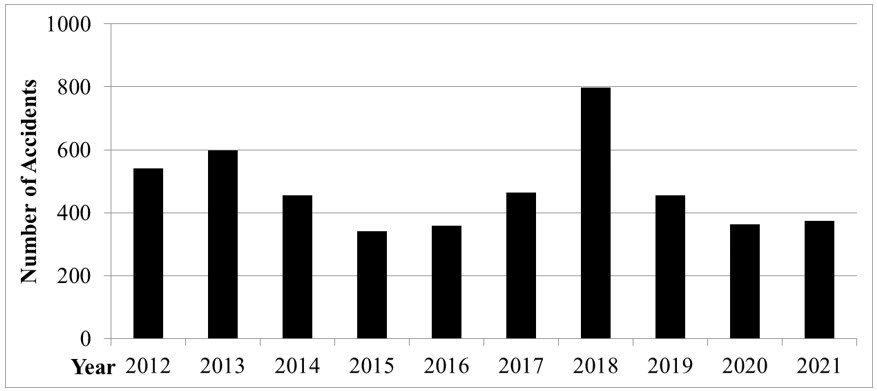 Figure 6: Annual accident numbers from 2012 to 2021