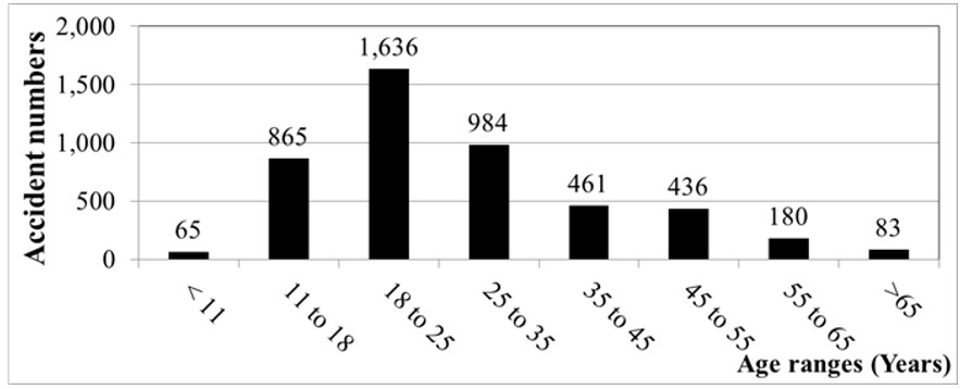 Figure 9: Relation between accident numbers and age range