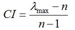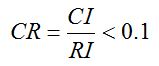 Where, n is the number of influencing elements and λmax is the dominant eigenvalue of the matrix, which is calculated from the pairwise matrix. As stated by Saaty, less should be the acceptable degree of consistency less than 0.1. To determine the inconsistency of the matrix assessment, the consistency ratio (CR) was used to analyze the consistency of the factors that were received from the expert assesments which can be formulated by Equation 2 [32]: