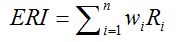 Where, consistency index is CI and random index is RI. The low ratio of less than 0.1 shows that the weight assigned to each element is appropriate. The following equation 2 was initially used to determine the consistency ratio (CR). In this study the online AHP calculator available at https://bpmsg.com/ahp/ahp-calc.php ICT was used to determine the criteria weight and the CR value. The weight of each factor becomes a multiplier with the score value obtained in the field, through the ERI mathematical formula using Equation 3: