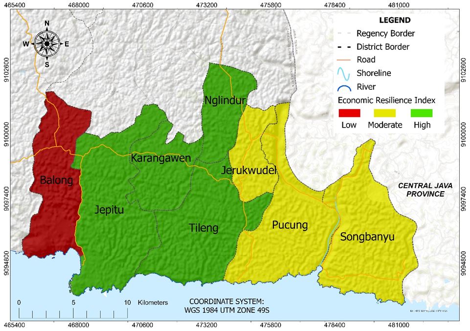 3.2 Spatial Analysis of Economic Resilience Index during COVID-19 in Marginal Lan Gunungsewu Karst Area