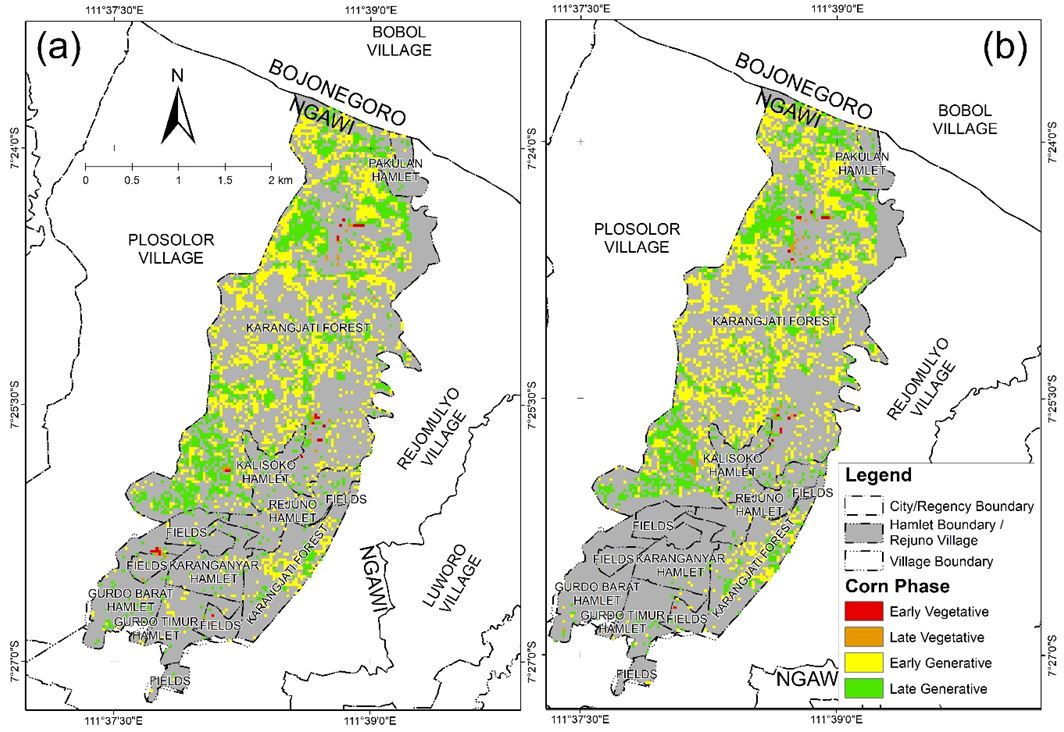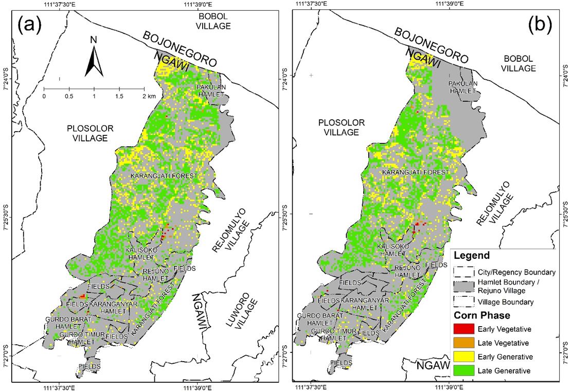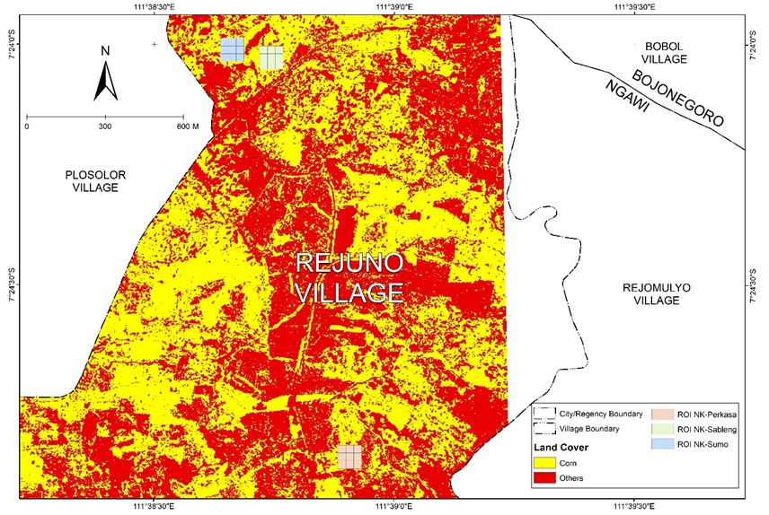 Corn is a versatile and seasonal crop that can complete its life cycle in 80-150 days [1]. The social economy relies on it for human consumption, animal feed, and industrial materials. Along with rice and wheat, corn is also an important source of carbohydrates in Indonesia [2]. Ngawi Regency is one of the largest rice producers in East Java, with a total production of 818.62 thousand tons of Miled Dry Grain (MDG) [3]. The area of Ngawi Regency is 1,394.74 km2, of which about 40%, or about 506.6 km2, are rice fields. Furthermore, Ngawi Regency contributes to the national corn plantation industry. According to data from the Central Bureau of Statistics (BPS), in 2021, 259,339 tons of corn were harvested from a plantation area of 33,948 ha (hectare) with a productivity of 7.64 tons/ha [4].